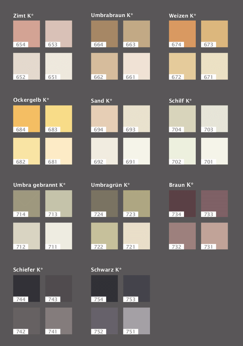 - Foggia Kalkwandfarbe (nur Farben mit K* , Kalkecht)