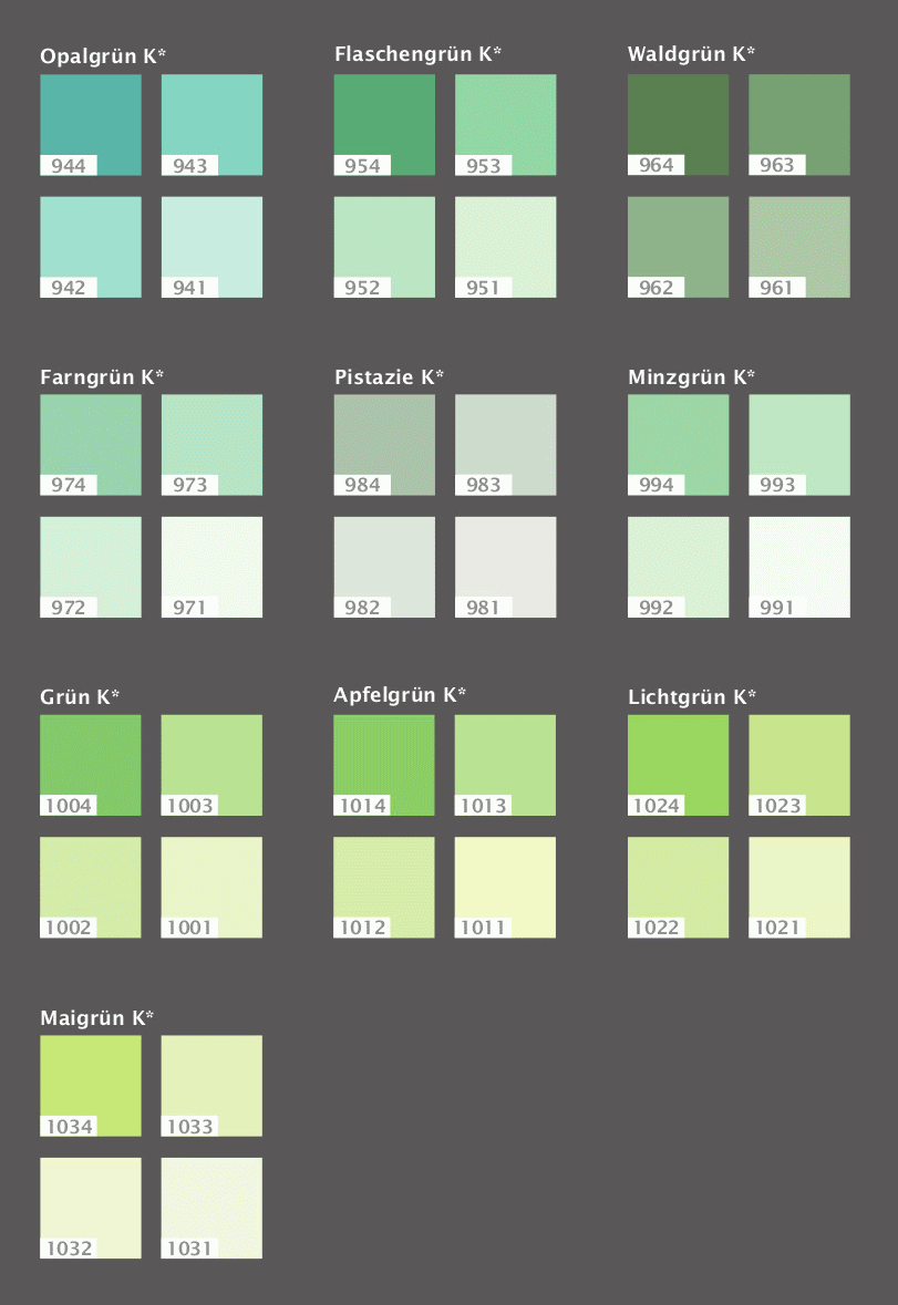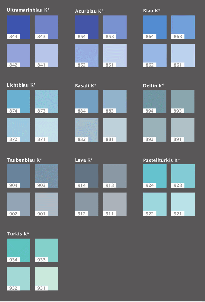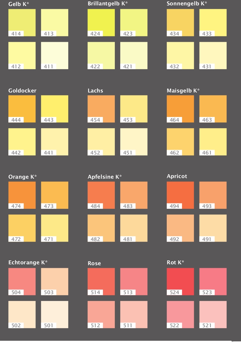 Alle Farbtöne mit Endziffer 1-4 sind möglich für: