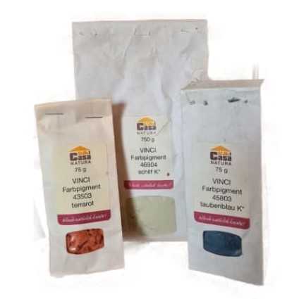 Casa Natura Pigmente Vinci können zum Abtönen von Lehmfarbe und Lehmputz verwendet werden.